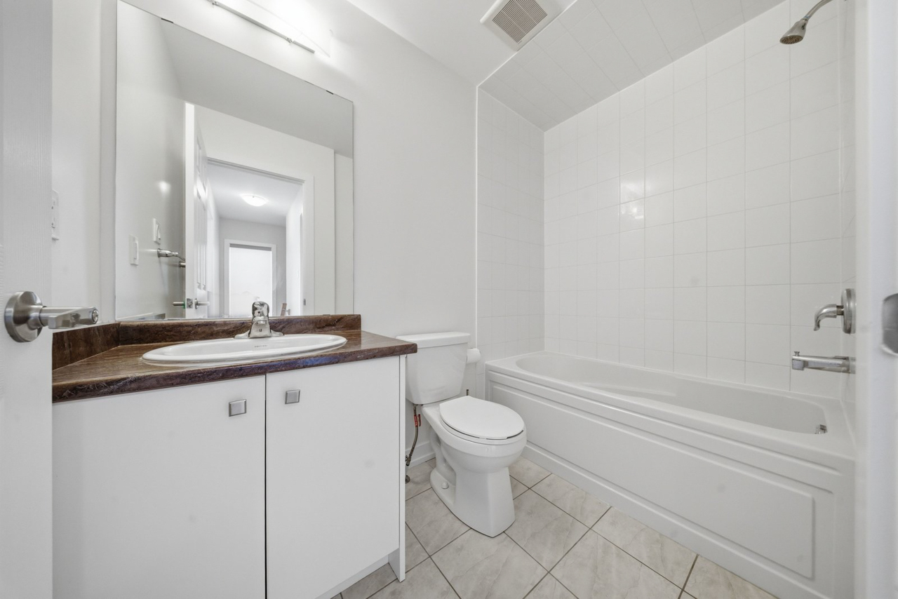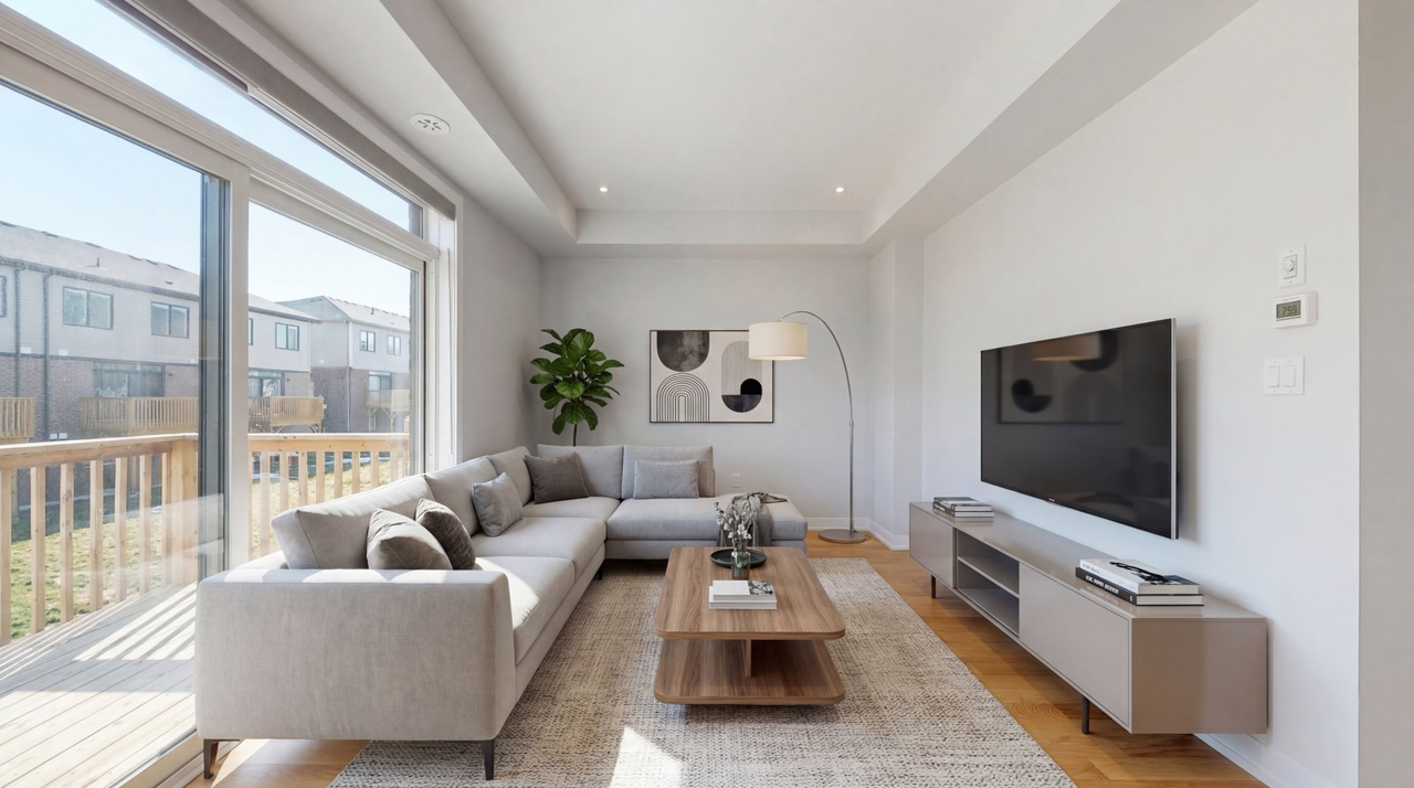 Upstairs, the open-concept main living area offers a bright and spacious layout, highlighted by a generous living room with an oversized sliding patio door that leads to your private rear balcony, a perfect spot to enjoy your morning coffee or unwind at the end of the day.