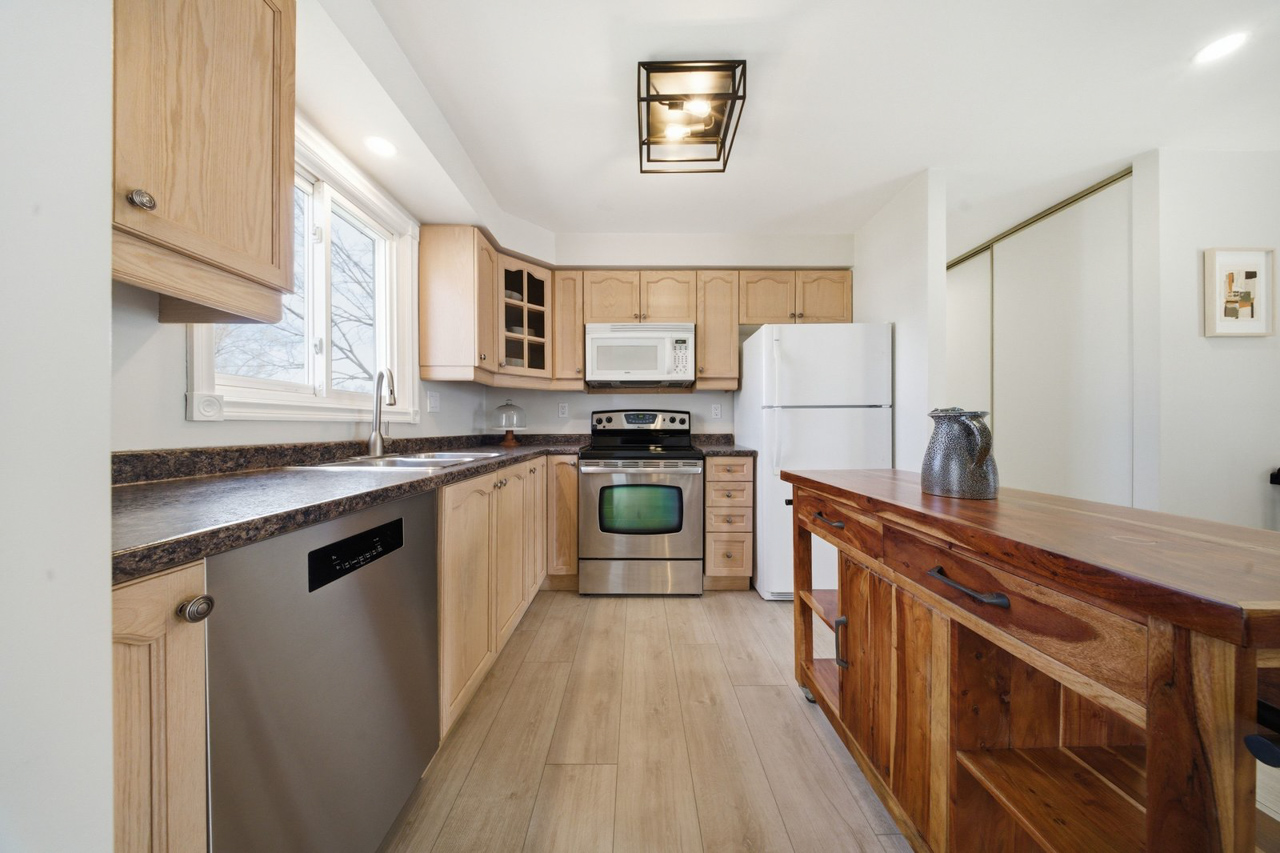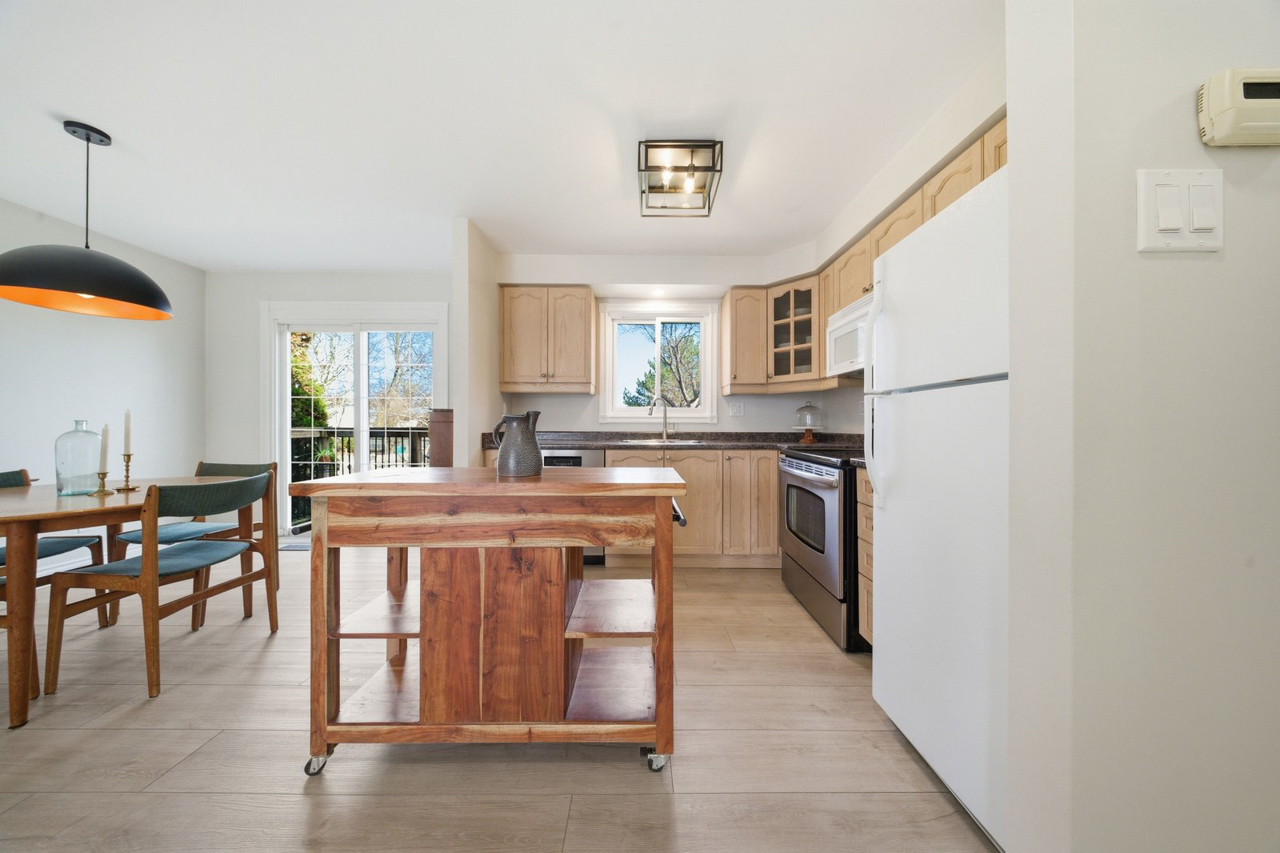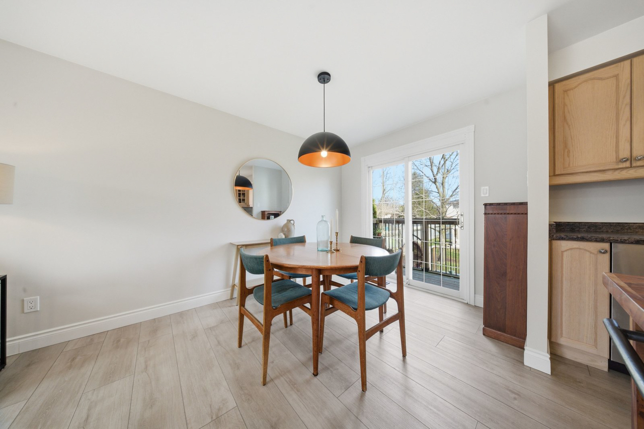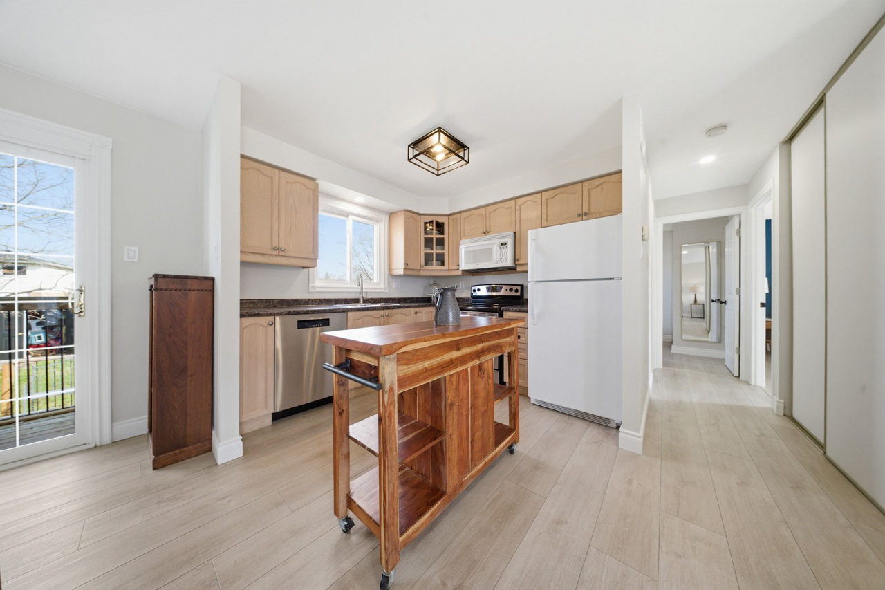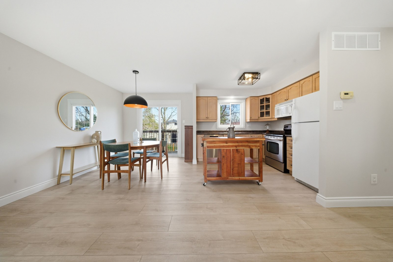 Step inside to a bright, open concept layout with a light and airy feel throughout, making everyday living and entertaining easy. The spacious living room flows seamlessly into the kitchen and dining area, creating a warm and inviting central gathering space. The kitchen features light oak cabinetry and ample cupboard space. Sliding patio doors off the dining area provide convenient access to the backyard deck.