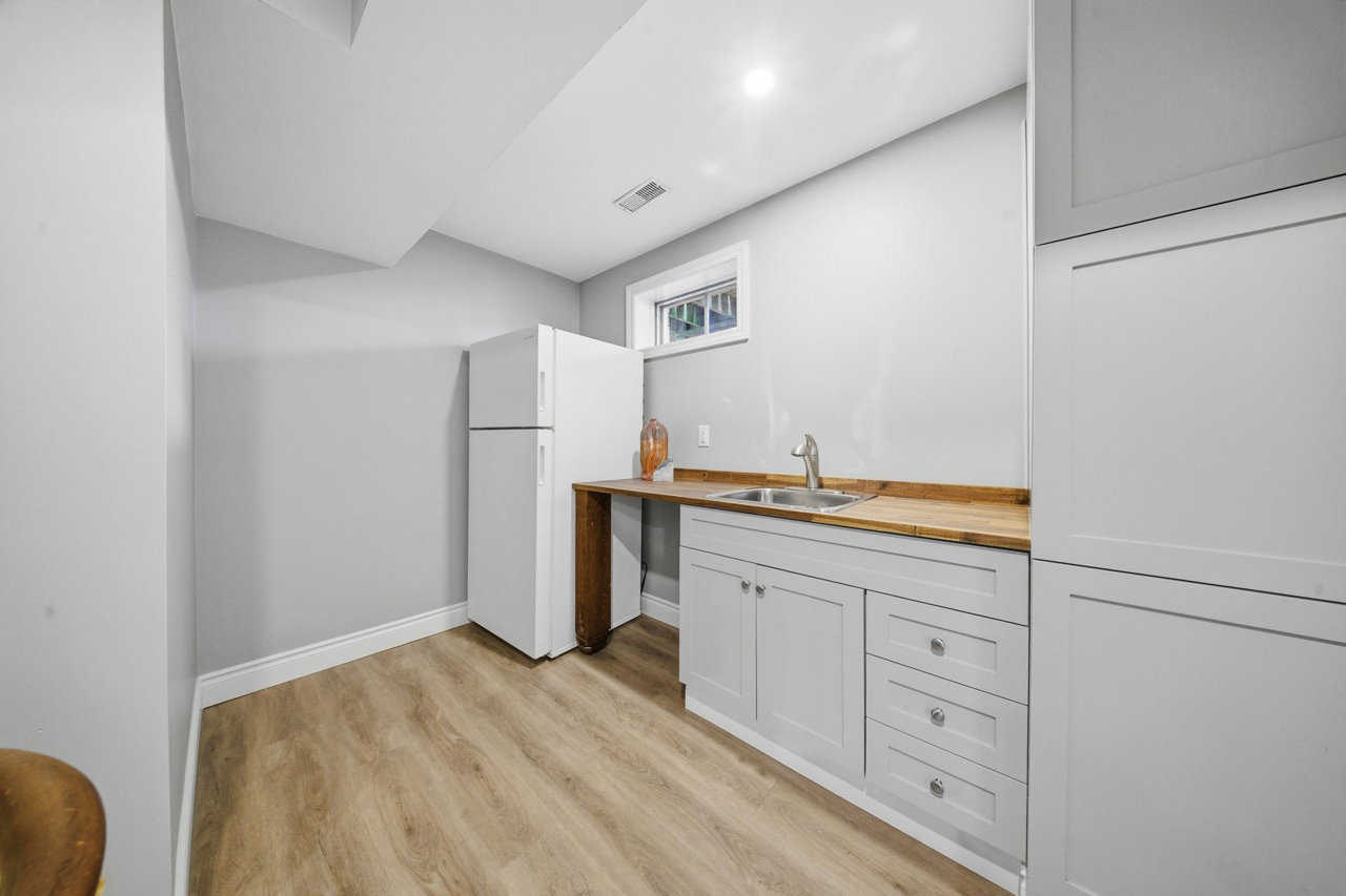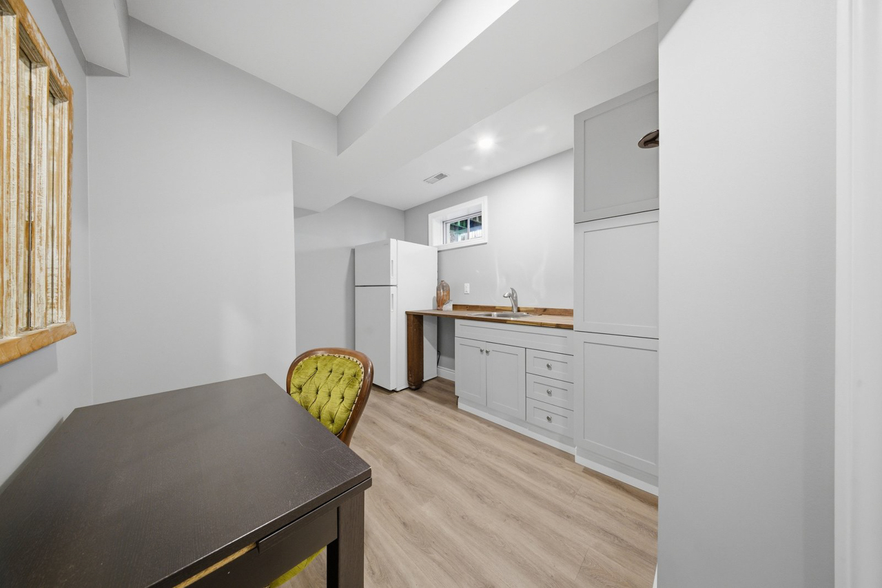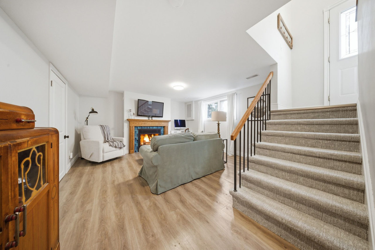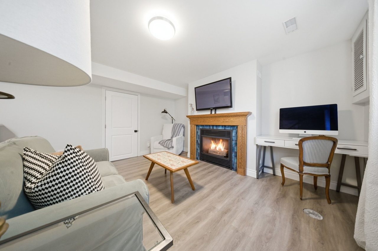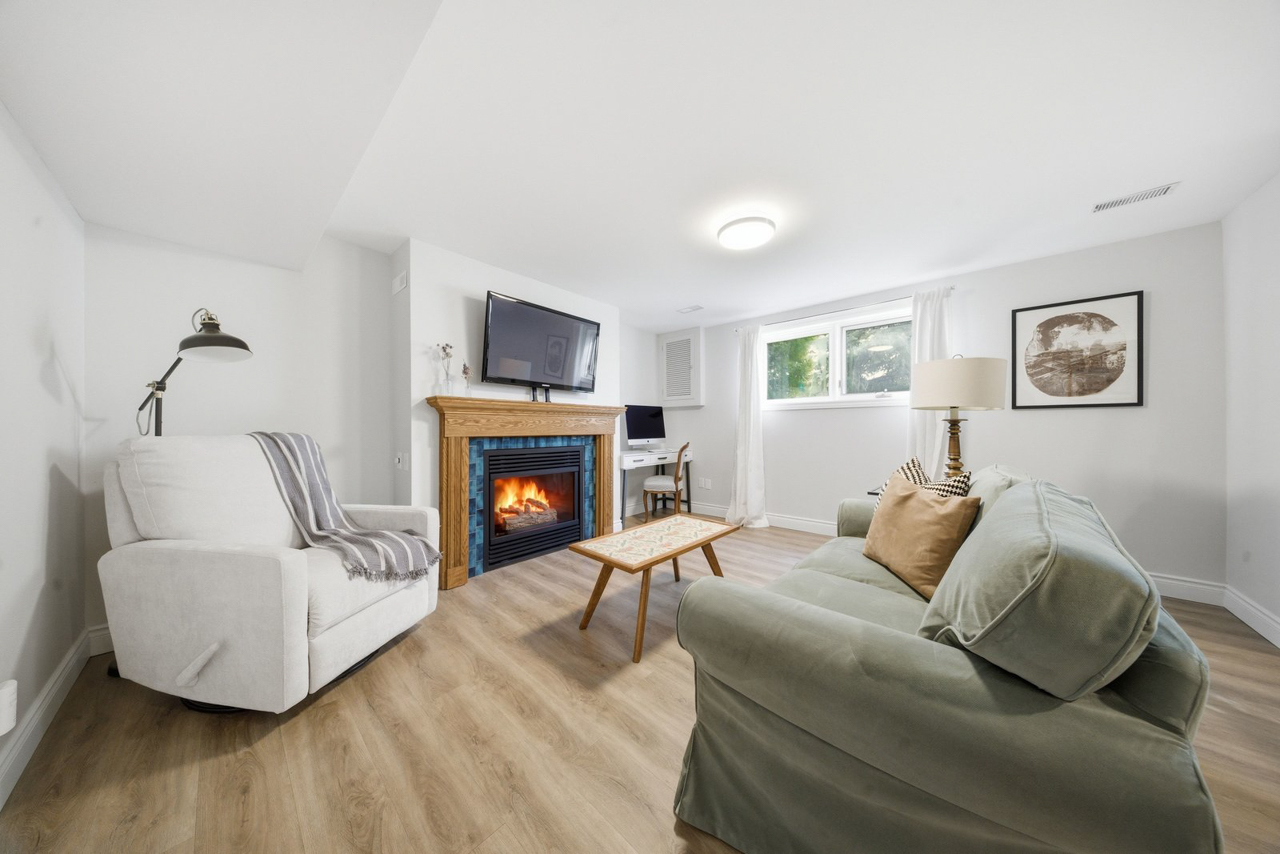 The lower level is accessed through the foyer and offers plenty of natural light throughout. A spacious rec room with a cozy gas fireplace is the perfect place to unwind on cool spring evenings. This level also includes an additional bedroom, a 3-piece bathroom, and a separate kitchenette, offering excellent in-law suite potential.