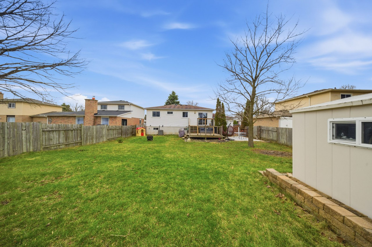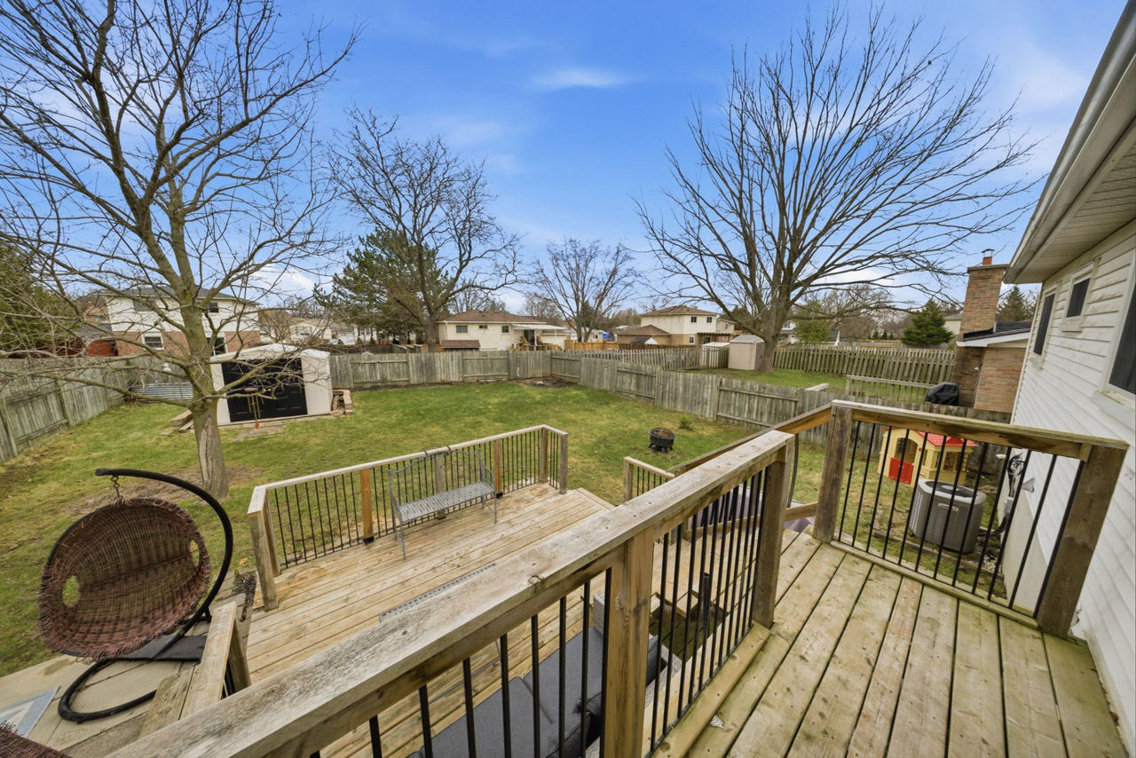 Outside, the fully fenced backyard is a wonderful extension of the home, complete with mature trees, a large two-level wooden deck, and plenty of room for both dining and lounging. The upper deck is the perfect BBQ area, conveniently located just off the kitchen. The spacious yard also offers plenty of room for kids to play and includes a generous garden shed.